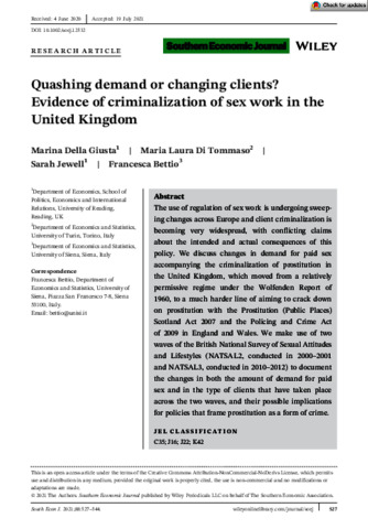 Quashing demand or changing clients? Evidence of criminalisation of sex work in the UK.