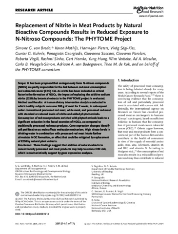 Replacement of nitrite in meat products by natural bioactive compounds results in reduced exposure to N‐Nitroso compounds: the PHYTOME project.